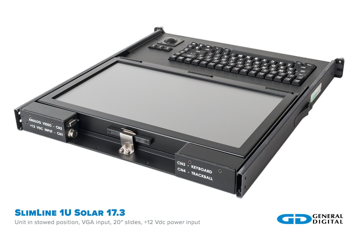 Rack mountable LCD models from General Digital meet the standards of all users with durability, simplicity, adaptability, and affordability. We have several flip-up models ideal for military, industrial and commercial uses that require in-vehicle mounting due to light weight and convenient mobility. Most General Digital monitors operate on a single +12 Vdc or +24 Vdc regulated source, available for purchase directly from us or customer supplied. Call 800.952.2535 today to discuss your requirements with a Sales Engineer.