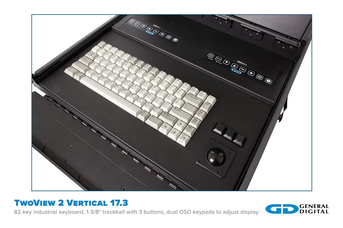 For companies, organizations and institutions that need a flip-up monitor with keyboard built to handle their industrial workload, General Digital display products are the answer. Our LCD monitors have always provided longevity and durability to customers. As we continue our sixth decade providing flat panel displays to the market, we continue to best the competition with: