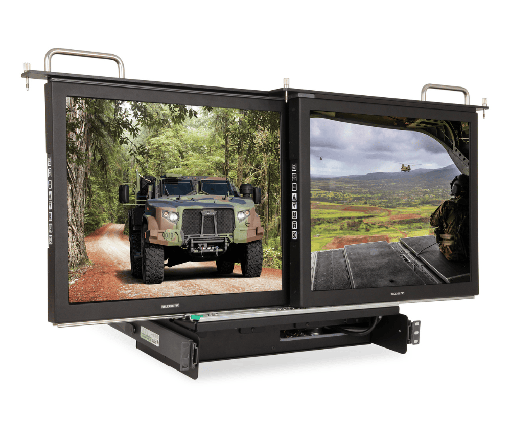 Learn MoreThe TwoView (dual display), SlimLine 1U and SlimLine Lite II (single display) families consist of military-grade flip-up LCD monitors with integral keyboards and trackballs in a 1U, 2U, or 3U high rack mount drawer.